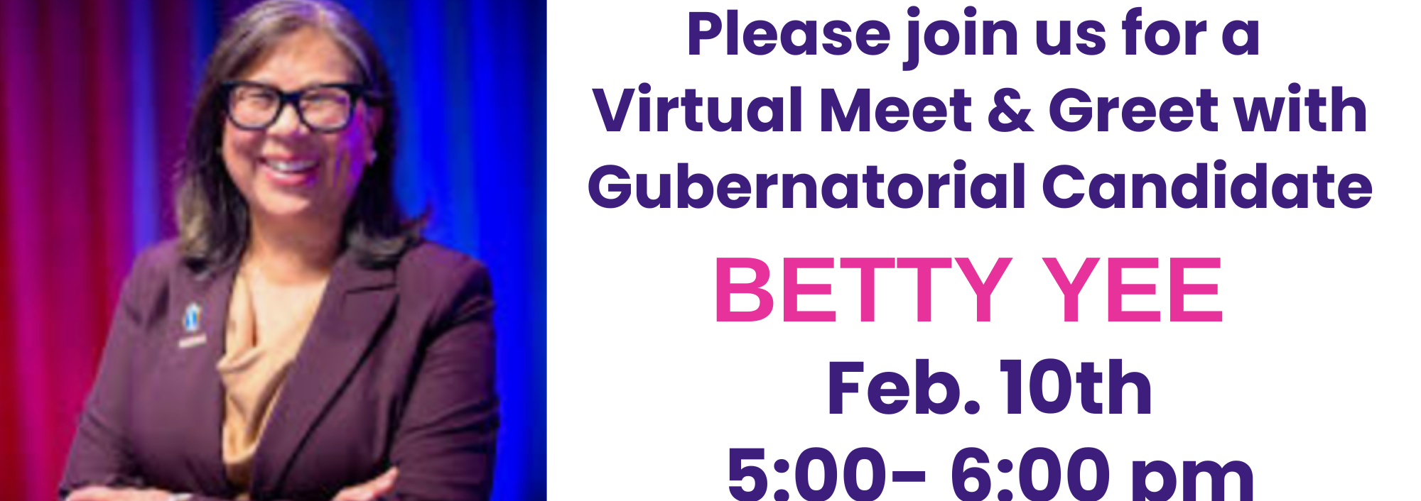 DAWN is excited to invite you to a virtual Meet & Greet with California gubernatorial candidate Betty Yee.